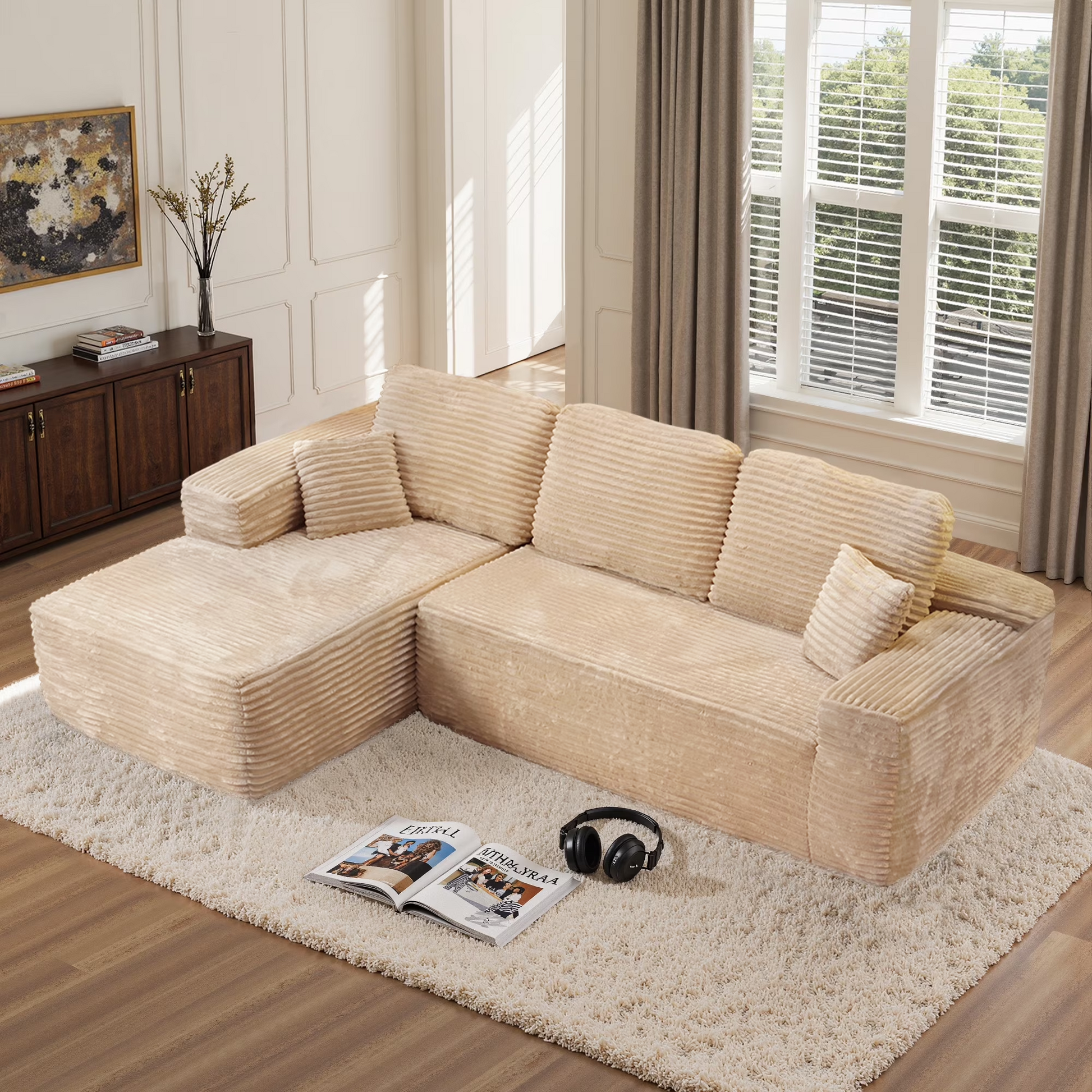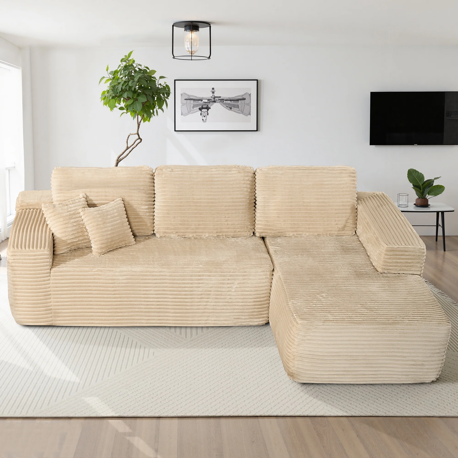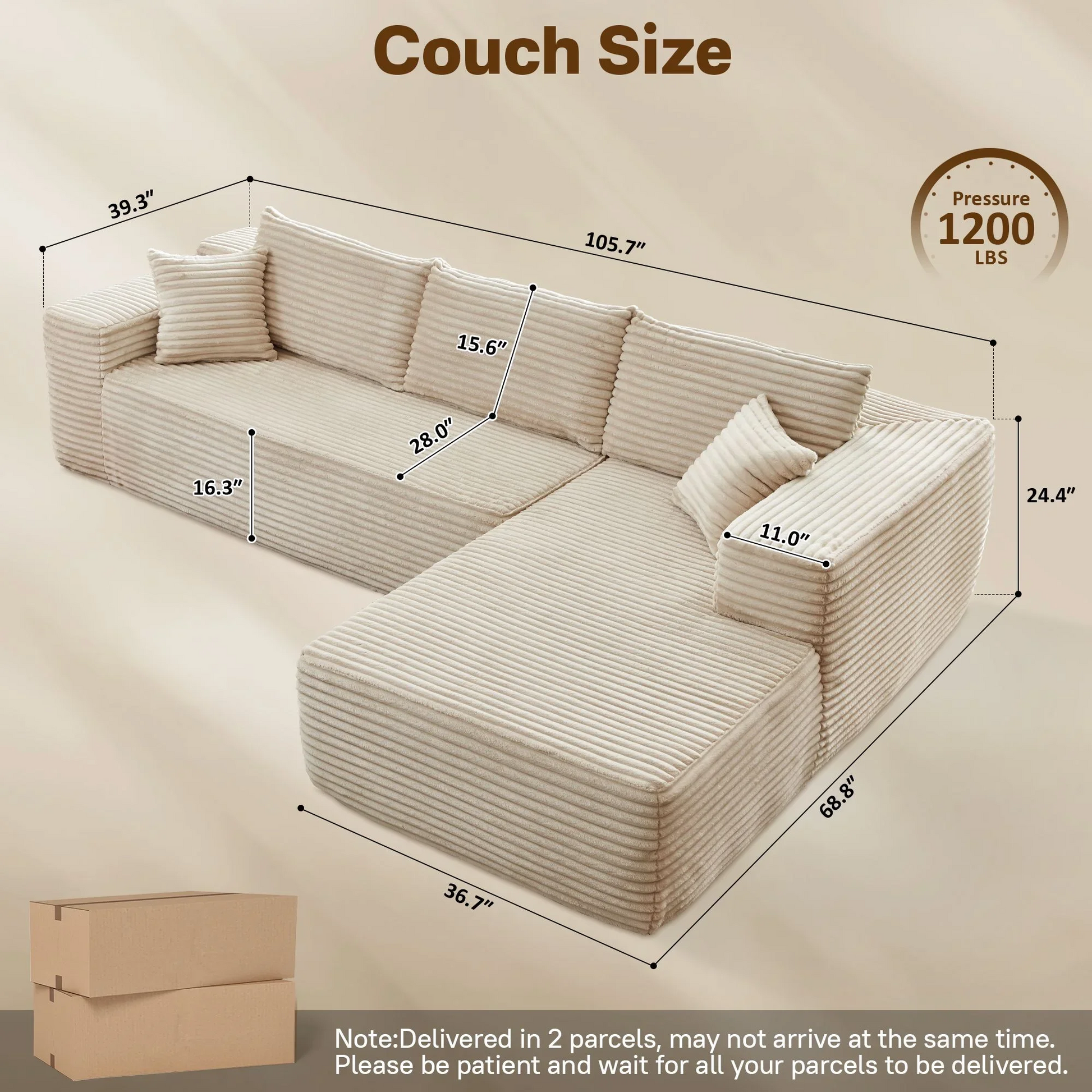 Vcatnet 106" Modular Sectional Sofa Couch Plush Corduroy Cloud Couch L Shaped Modern Minimalist Couch with Chaise for Living Room