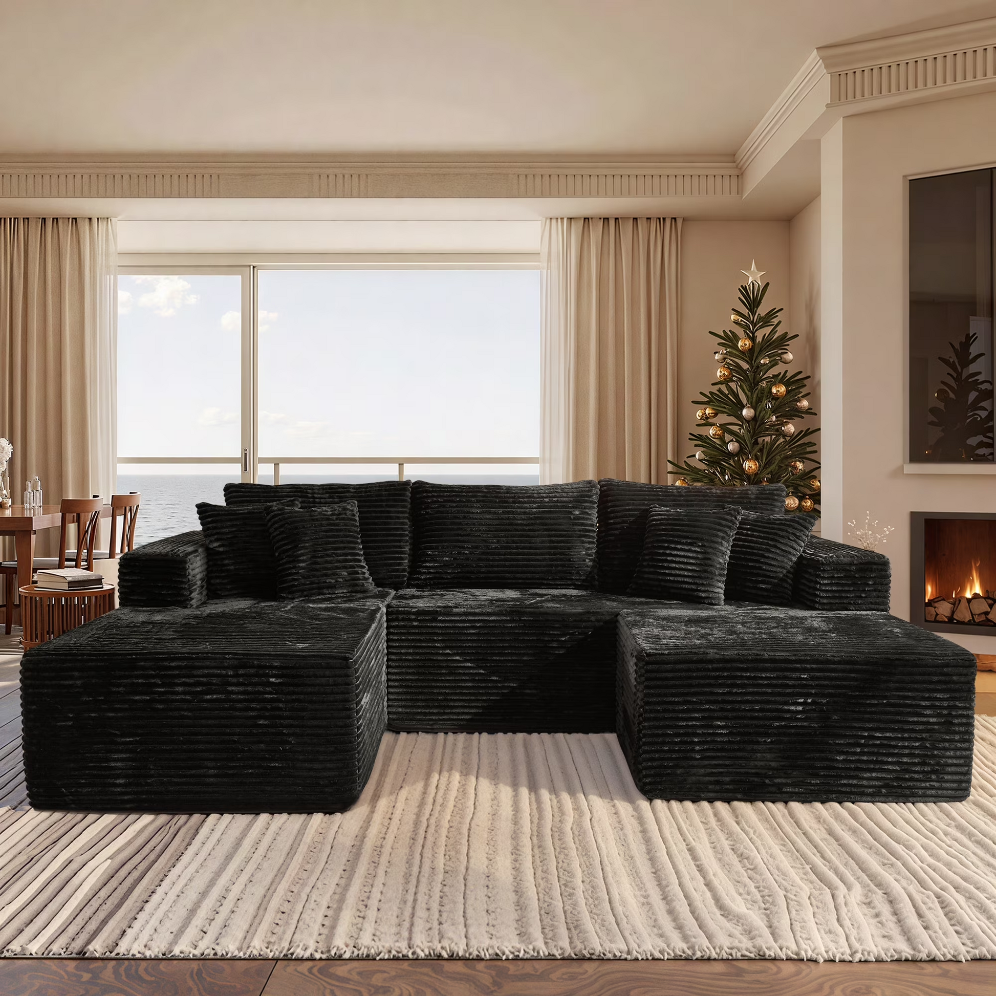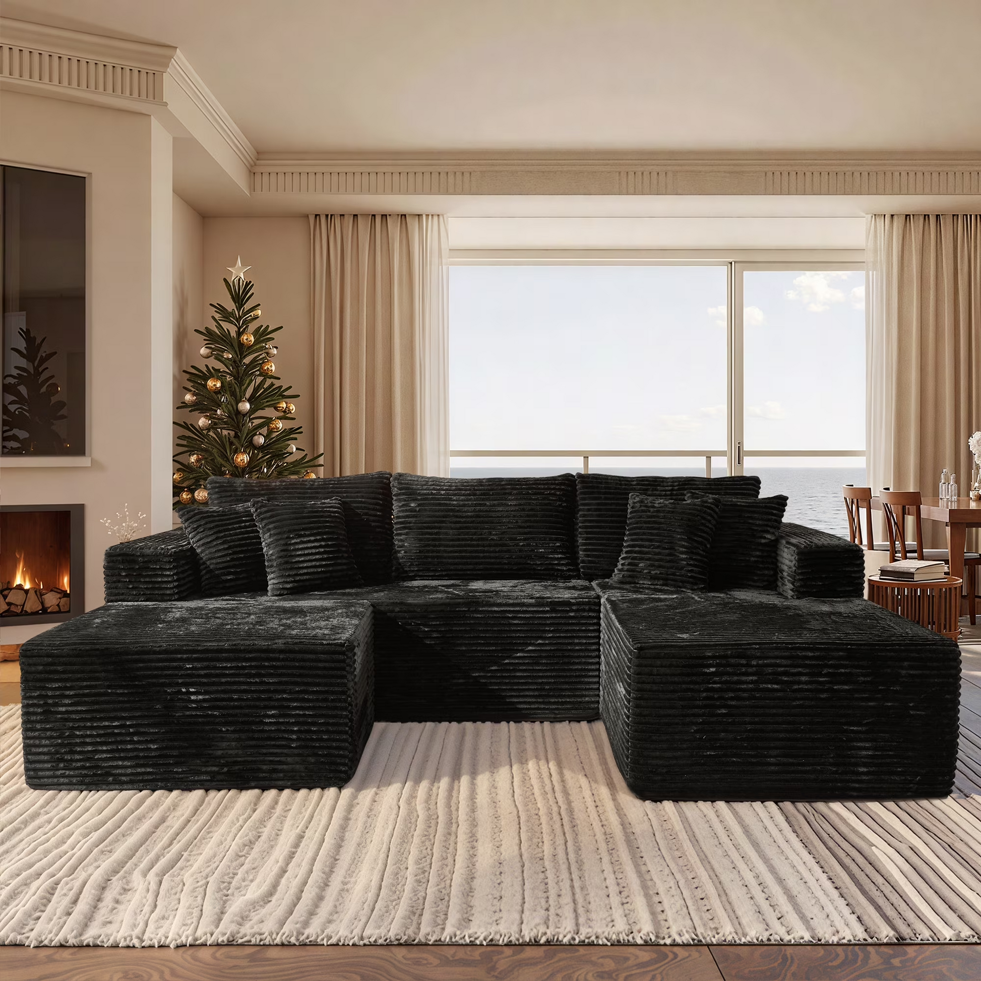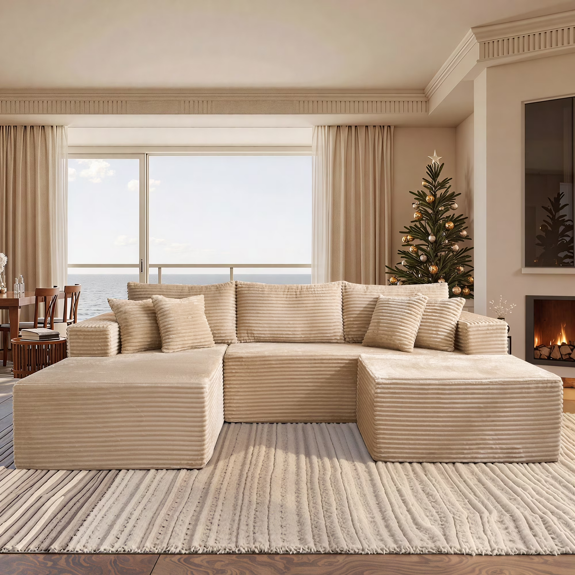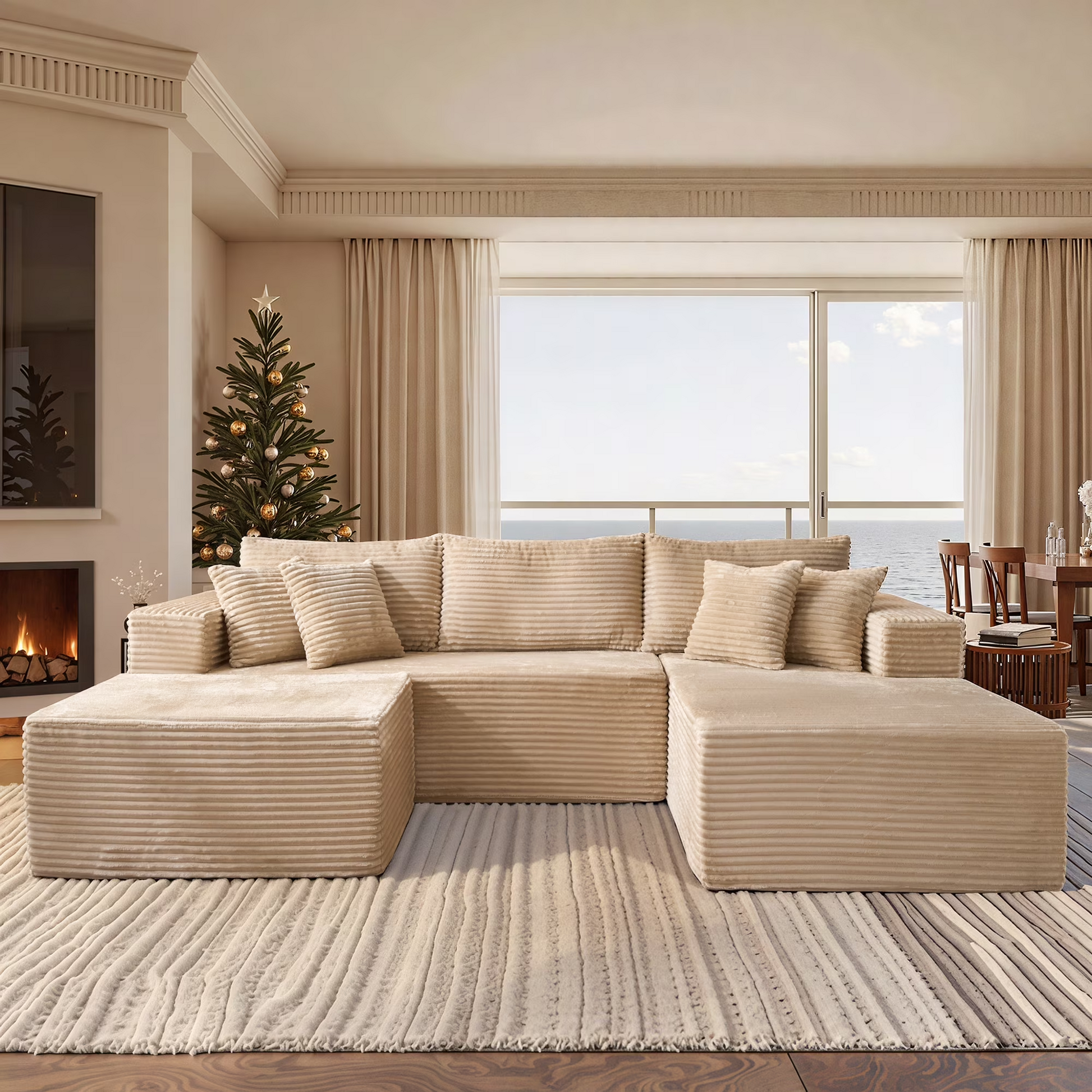 Luxurious and Wrinkle-Resistant Plush Corduroy Fabric:This comfy corduroy sofa couch features corduroy fabric that offers a ultra-soft plush, velvety feel, also pet-friendly while maintaining softness over time. Resistant to pilling, ensuring it stays looking great for years. You can count on this oversized sectional sofa to hold up through countless hours of relaxation