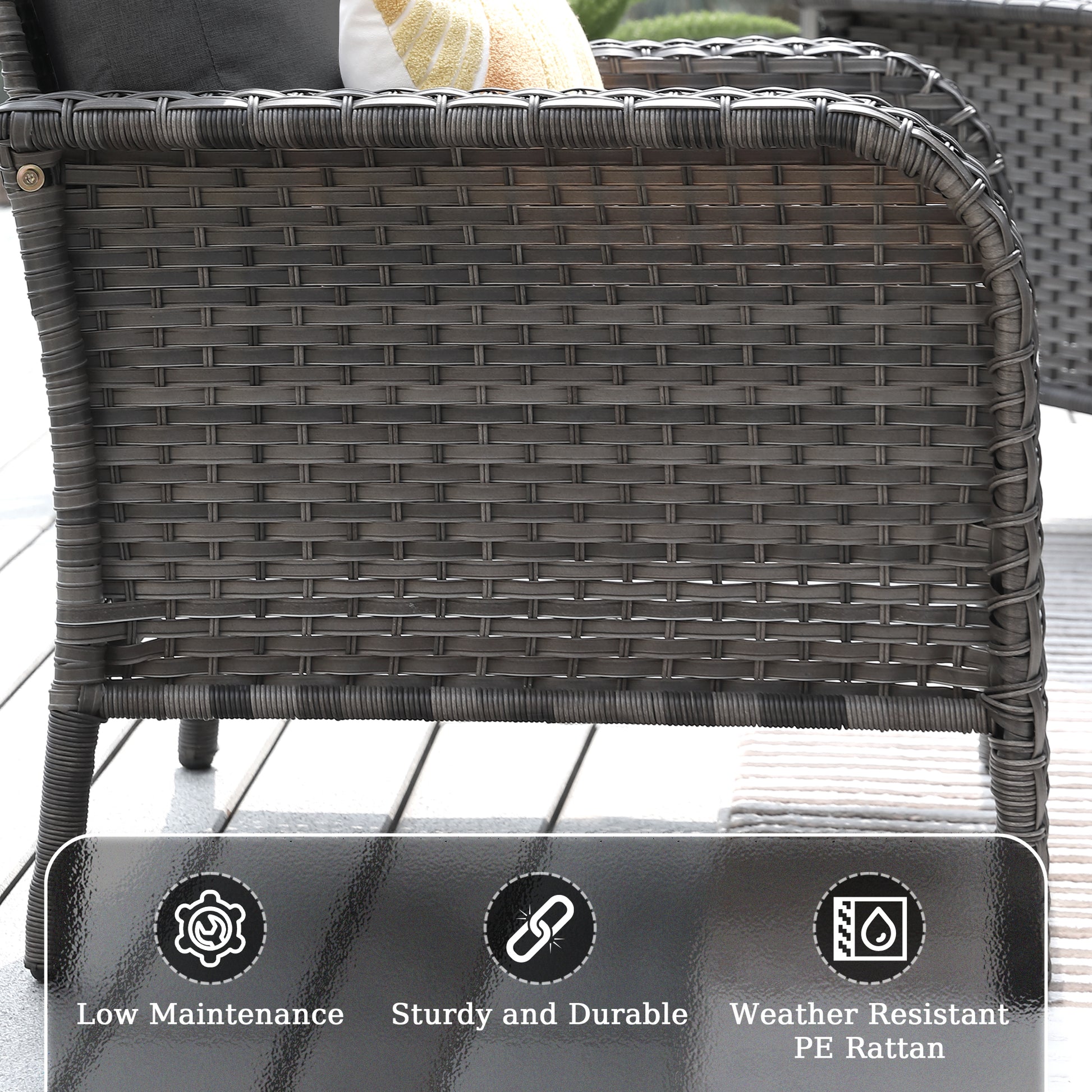 【Comfy & Easy to Maintain Cushions】Thickened seat cushions full filled with PP cotton and high density foam,this outdoor patio furniture set offers great support and extraordinary comfort and reduces fatigue,allowing you to relax and stay comfortably for long.
