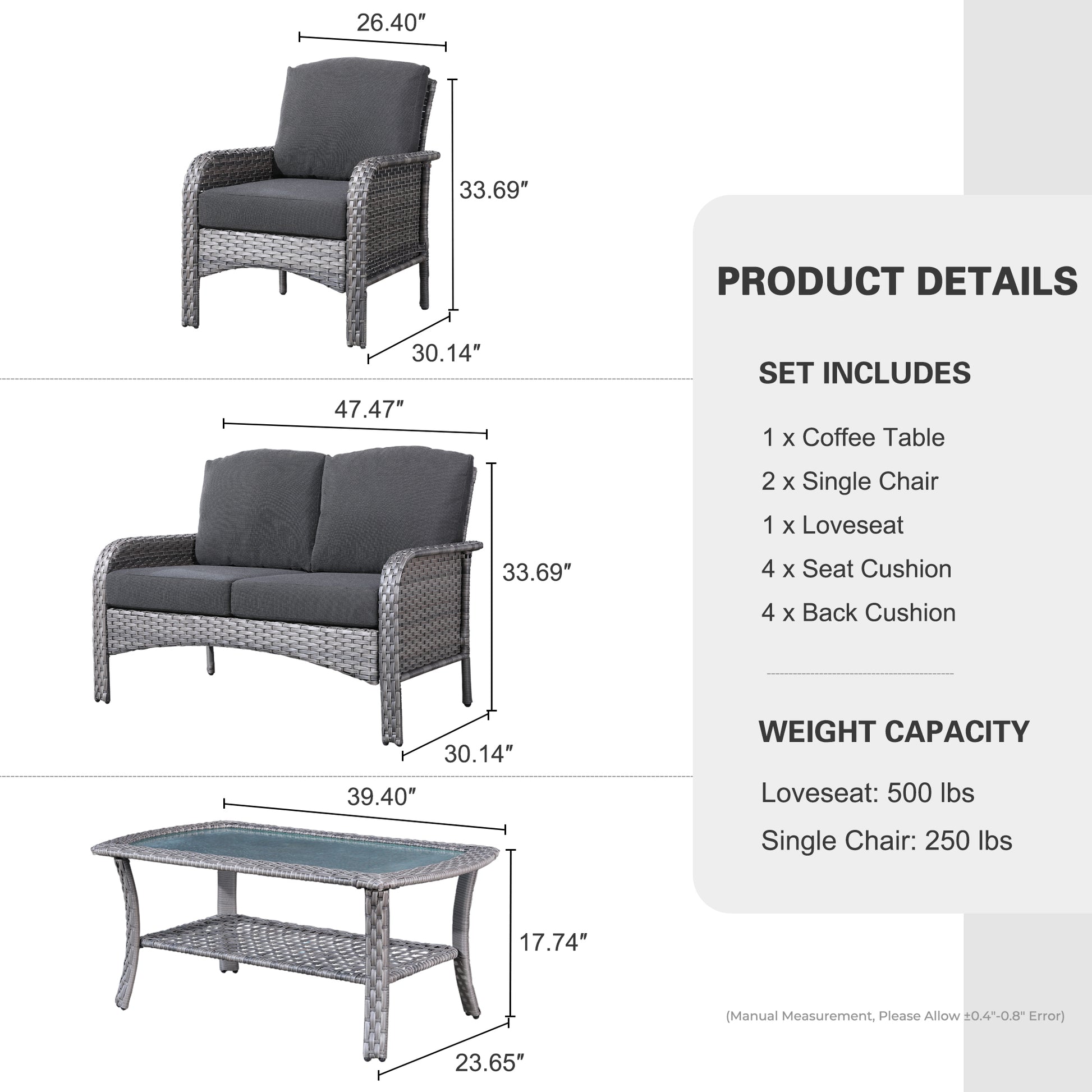 Vcatnet 4 Pieces Outdoor Patio Furniture PE Wicker Rattan Conversation Set with Coffee Table,Black