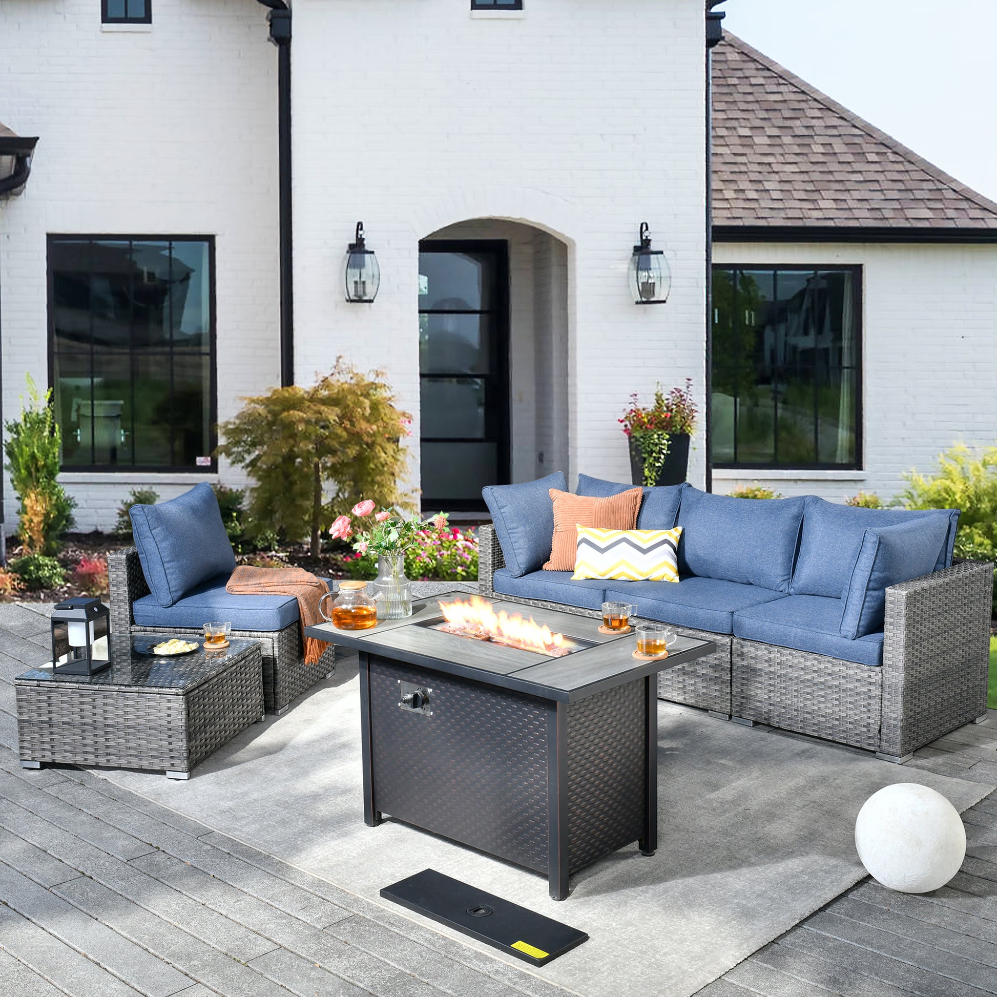Vcatnet 6 Pieces Conversation Set Outdoor Patio Furniture Sectional Sofa with Fire Pit Table,Denim Blue