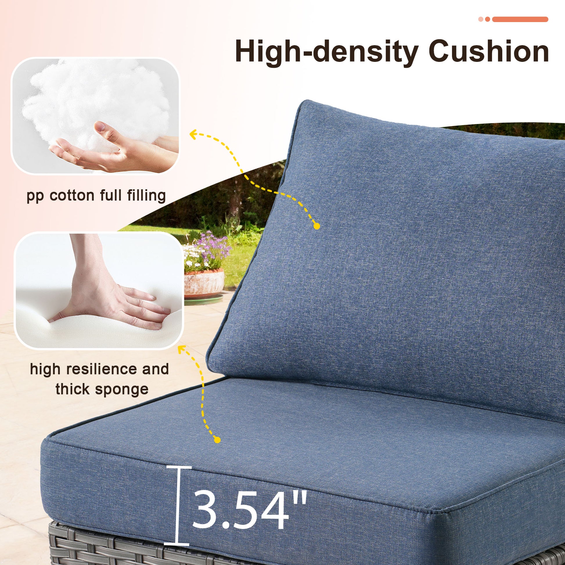 【Comfy & Easy to Maintain Cushions】Thickened seat cushions full filled with PP cotton and high density foam,this outdoor patio furniture set offers great support and extraordinary comfort and reduces fatigue,allowing you to relax and stay comfortably for long.Removable and washable,the cushion covers are easy and convenient to clean and maintain