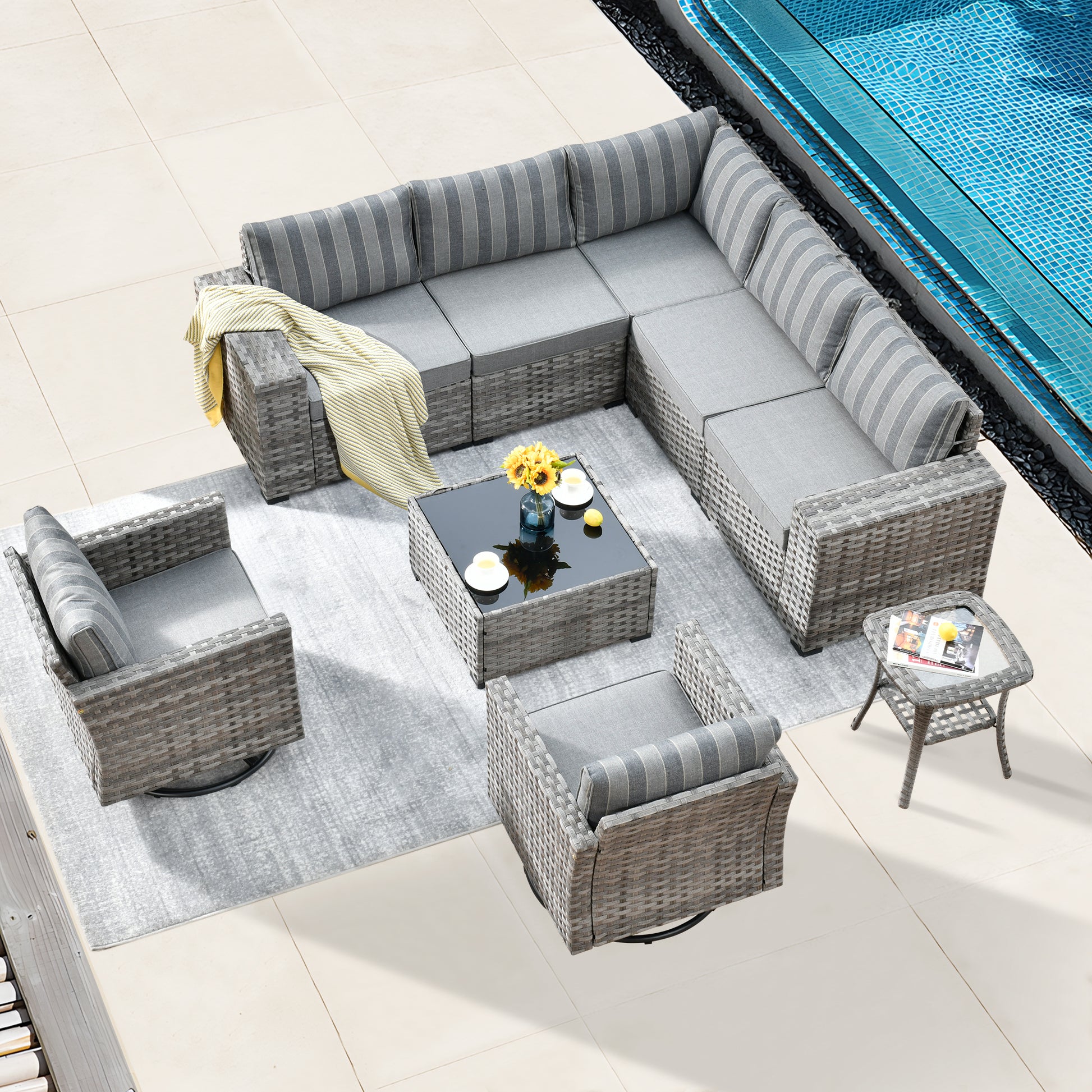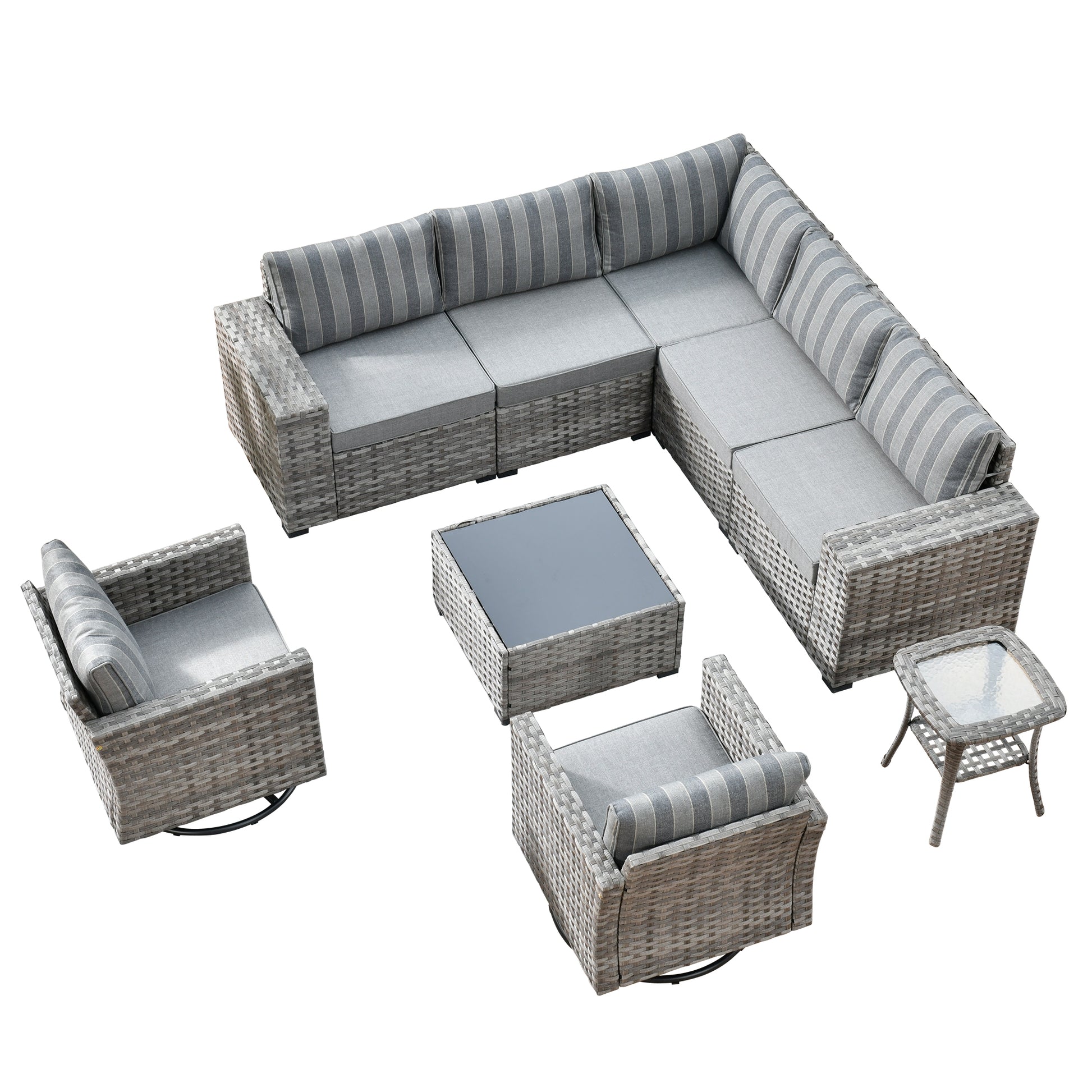 Vcatnet 9 Pieces Conversation Set Patio Outdoor Wicker Furniture with Glider Chairs and Coffee Table,Gray Stripes