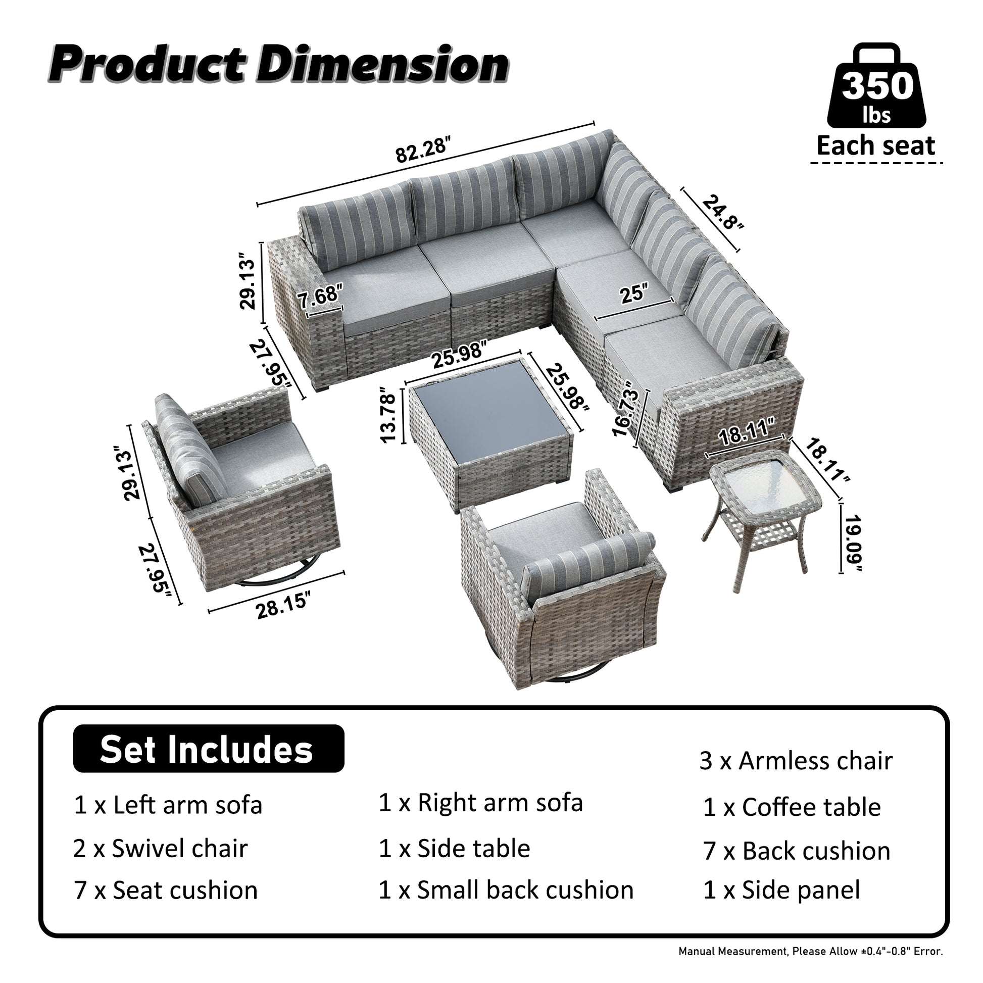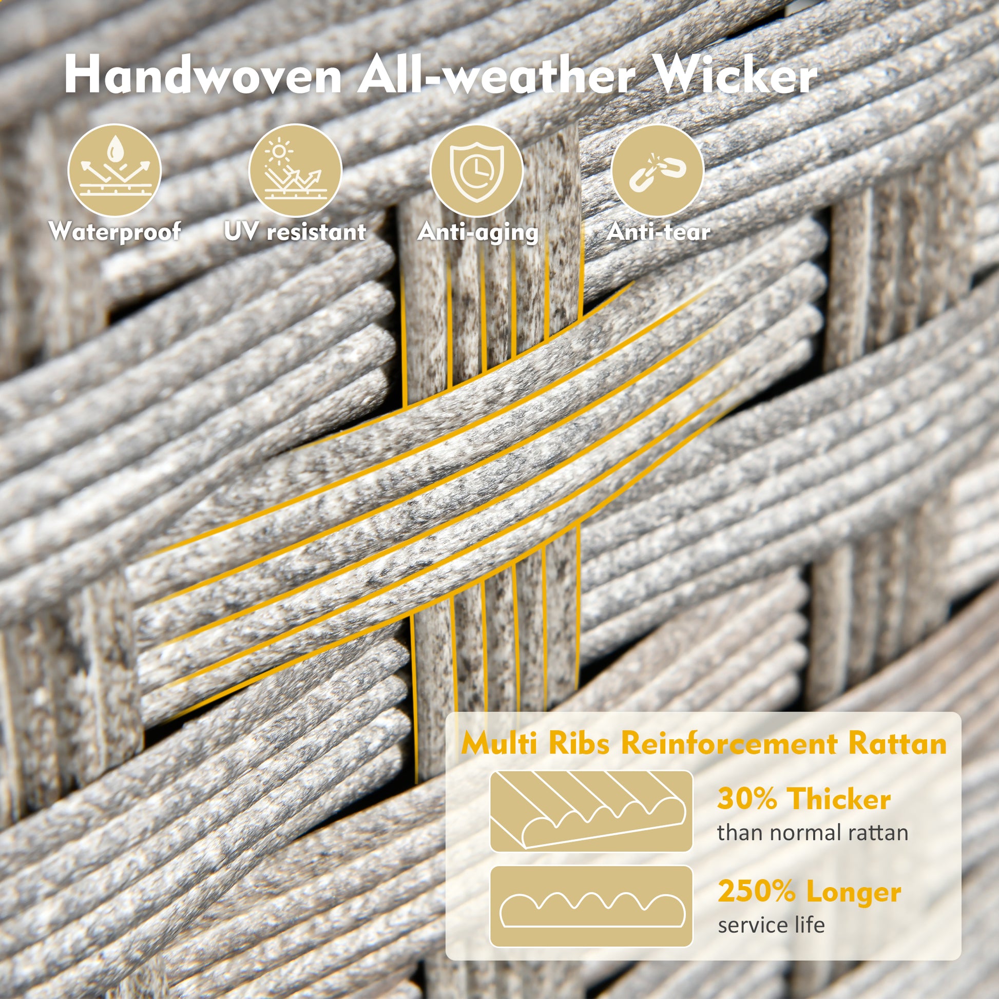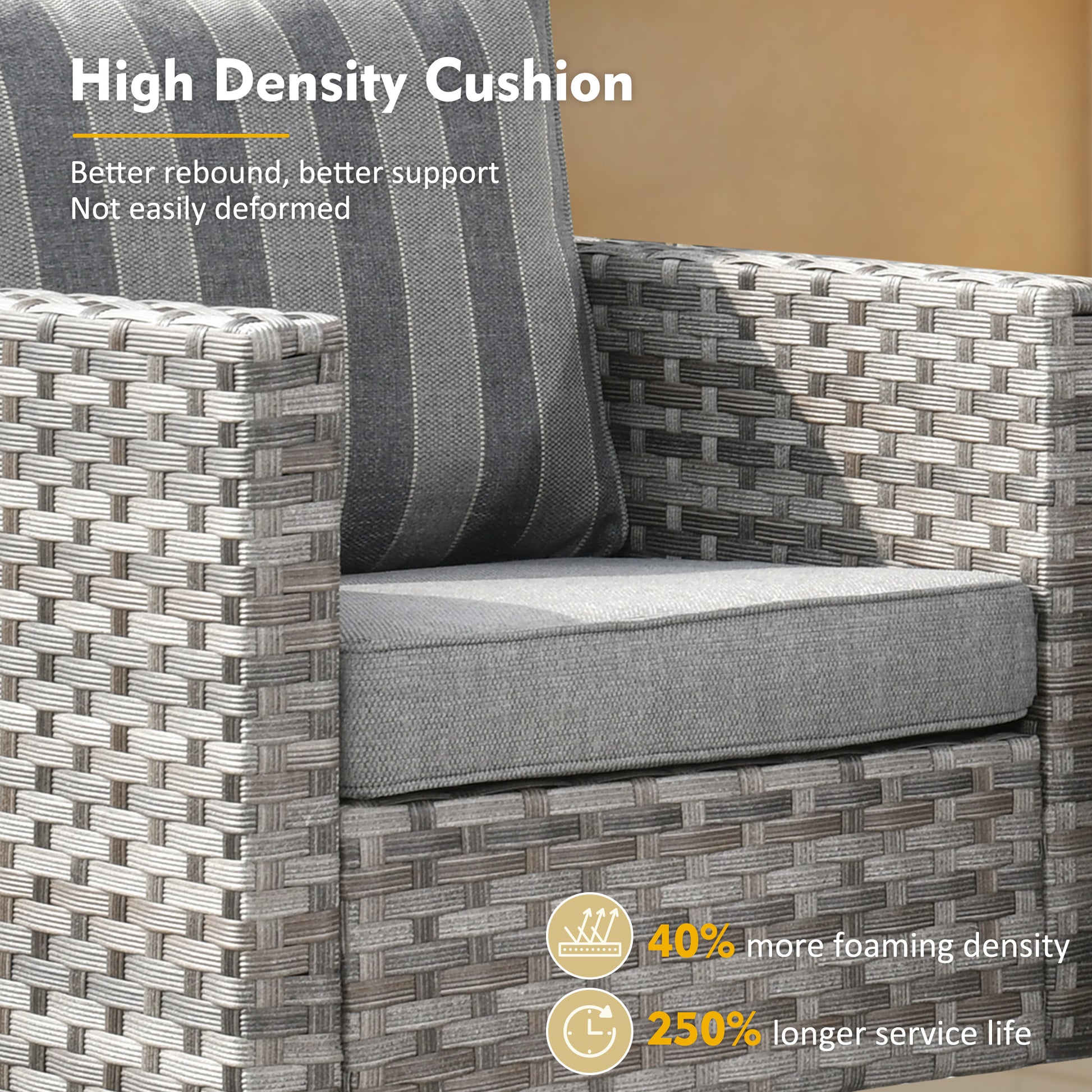 【Comfortable Seating】Thickened seat cushions full filled with PP cotton and high density foam,this outdoor patio furniture set offers great support and extraordinary comfort and reduces fatigue,allowing you to relax and stay comfortably for long.Removable and washable,the cushion covers are easy and convenient to clean and maintain