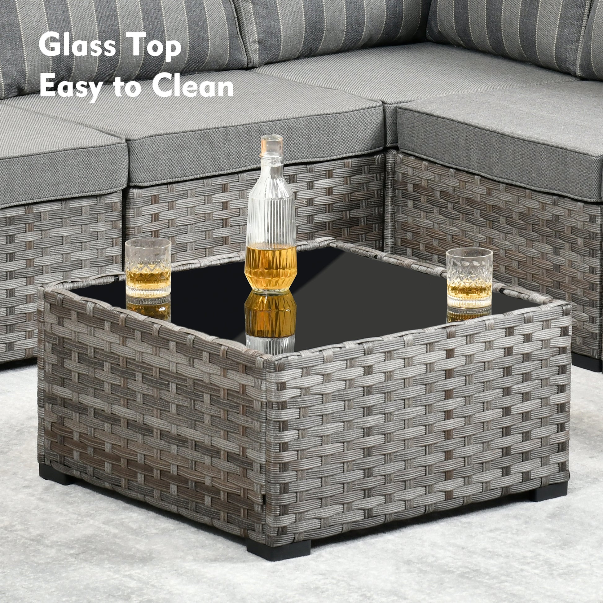 【Tempered Glass Table】This patio furniture set comes with a tempered glass coffee table.It is not only easy to clean, but also sturdy and durable.Perfect for keeping your stuff,such as drinks,cell phone, or books within reach